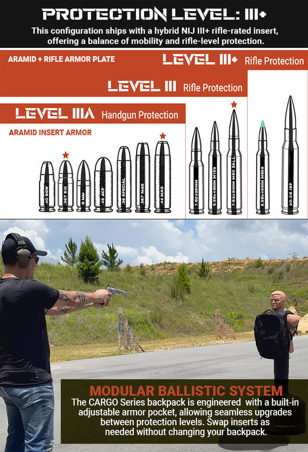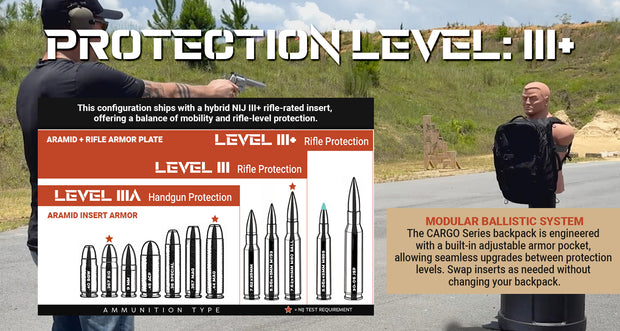 CARGO | Tactical Backpack with Aramid and Rifle Protection Armor Insert (III+ Equivalent)