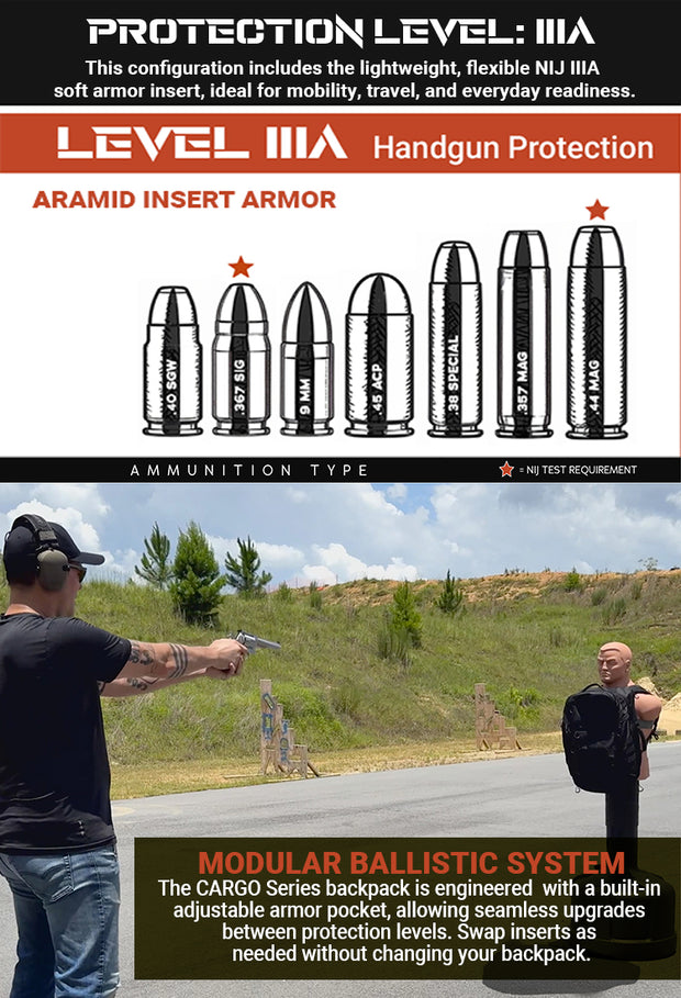 CARGO | Tactical Backpack with Aramid Armor Insert (NIJ IIIA Equivalent)