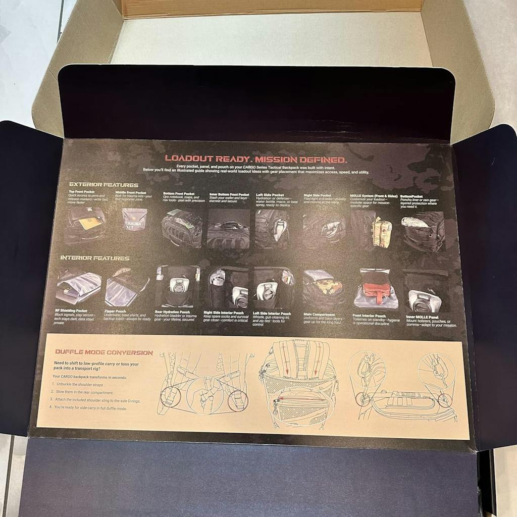 Built to withstand weather, travel, and real-world abuse. With reinforced stitching, weather-sealed zippers, and a waterproof shell, the CARGO can survive rain, mud, travel abuse, and hard field use.