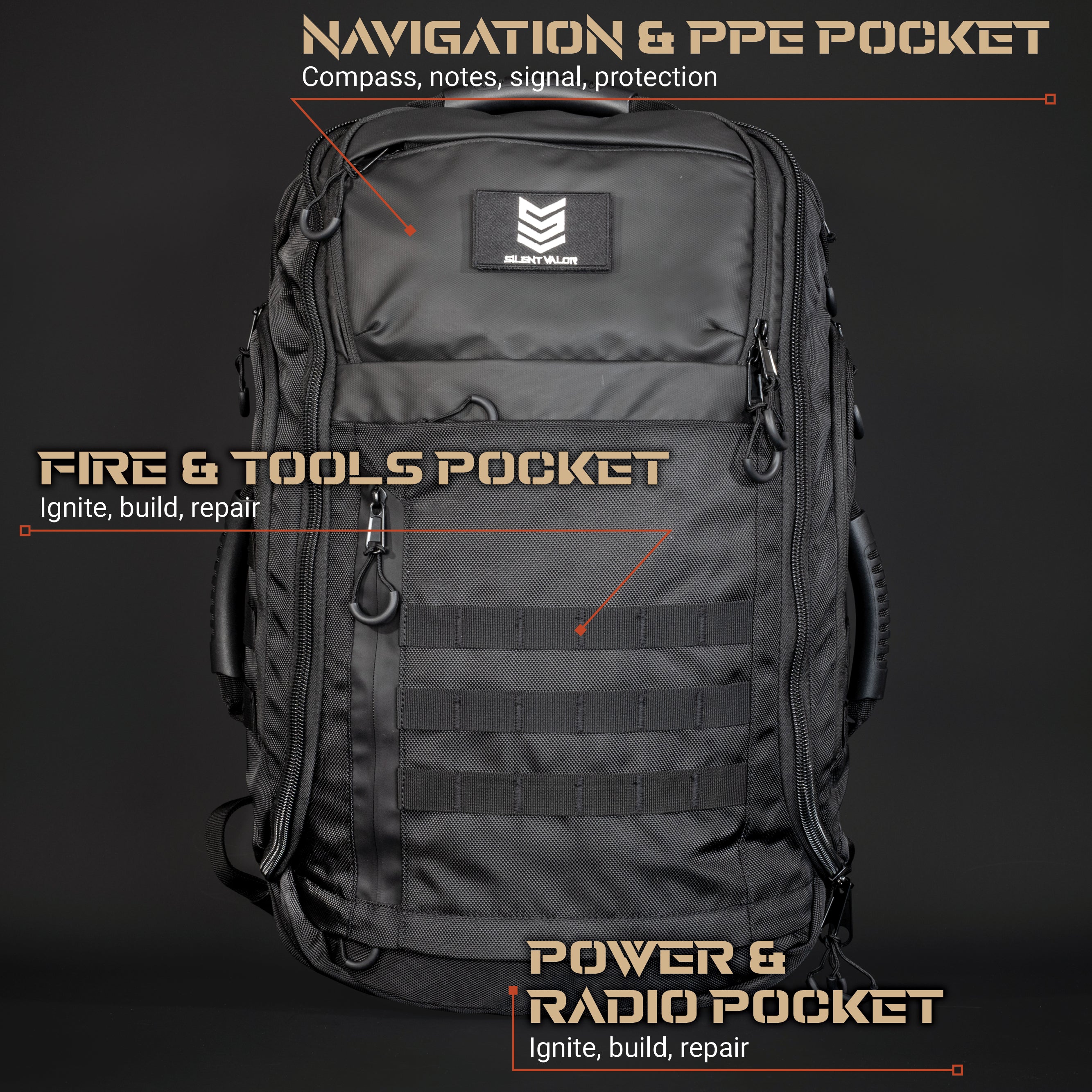 Unlike traditional emergency kits that sit unused in a closet, this system is designed for immediate mobility. Every component is organized inside the CARGO 48L tactical backpack, allowing you to move quickly with everything required to sustain yourself.